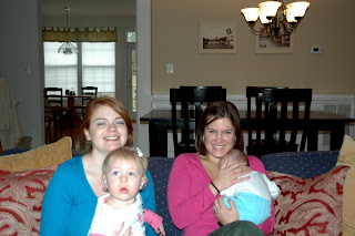 Laina enjoyed the visit, too…although she had more of an interest in eating snacks than checking Annie out. Sam and I noticed something interesting though.. Laina was less engaged than she normally is, and it seemed that she was almost steering clear of me most of the time. As soon as Annie was no longer in my arms though, she came right over. She then wanted to check out Annie when Kayla was holding her. We couldn’t help but wonder if we just observed her first feelings of jealousy!! How cute.