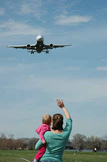 A couple weeks ago, the three of us headed to Gravelly Point on Saturday to watch the airplanes take off/land. Laina already was very interested in airplanes, but after this trip, her interest grew! She was really excited, but also pretty overwhelmed by the whole experience. When the planes were at a distance, she waved to them and was feeling pretty comfortable without Mommy and Daddy nearby. As they got closer though, she made sure to be right next to us (or in our arms!)