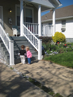 The other day Laina and I met a few friends at Dairy Godmother in Del Ray…it is probably the best custard I’ve ever had (maybe second to Kline’s in Harrisonburg!) Laina has tried ice cream a couple times, but never had her very own dish. She loved her vanilla custard, and so did her buddies! After we all indulged, we were planning to go to the playground nearby to let the kiddos run around for a bit. They however, had other plans. Laina and Sameh decided they wanted to walk the streets instead, and they found their very own playground at someone’s cute little home. Still don’t know what it was about this particular house, but they were perfectly content climbing the stairs, walking down the driveway, chasing and kissing each other, etc. We felt a little awkward that we were just hanging out in front of this house, but we figured who could get upset at these little cuties?!