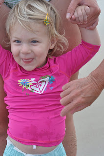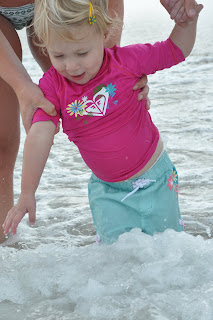 I guess she knew how much fun she was going to have! She absolutely loved hanging out with everyone: Grammy, Granddad, Nana, Aunt Pam, Uncle Tom, Bob, Christine and Patrick (and Pumpkin and Smoky of course!) She made herself right at home soon after we got here, and enjoyed every moment she had exploring the beach house, playing with family, digging in the sand, collecting shells, and even getting in the water. After a few days of being there, Laina was ready to venture into the ocean with Pam and Christine. It was awesome to watch her brave the waves, and giggle as they came crashing around her.