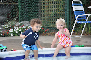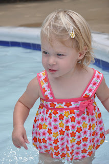 Laina goes through her checklist with me every time we go to the pool…which has been quite a bit this summer since the pool is conveniently right behind our house. It’s so fun to watch her play in the pool…at this point it seems like she prefers the baby pool, but she does like to go experiment at the “big girl pool.” She likes to sit down in the pool, or get on her hands and knees and say “Laina’s swimming!”
