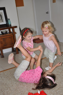 is one of Laina’s favorite things to do right now. LOVES it. Especially when her older friends are by her side doing it with her. At our play date the other day, Katy, Nicole and I got to watch the girls do several rounds of it. It was too cute for words.