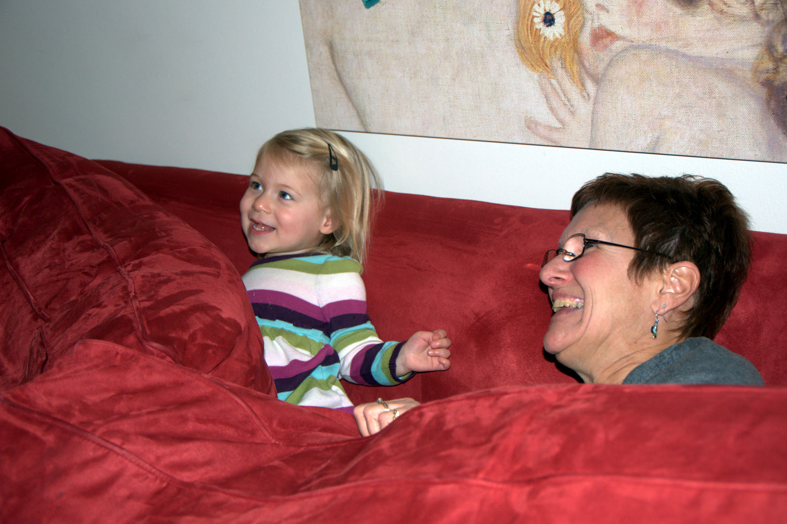 Hide and Seek (Laina style) by Casey|Published November 25, 2009 This is one of Laina’s favorite hiding spots—she always leaves her little feet hanging out of the pillows, and a lot of times she giggles or says something so we have a pretty easy time finding her :).