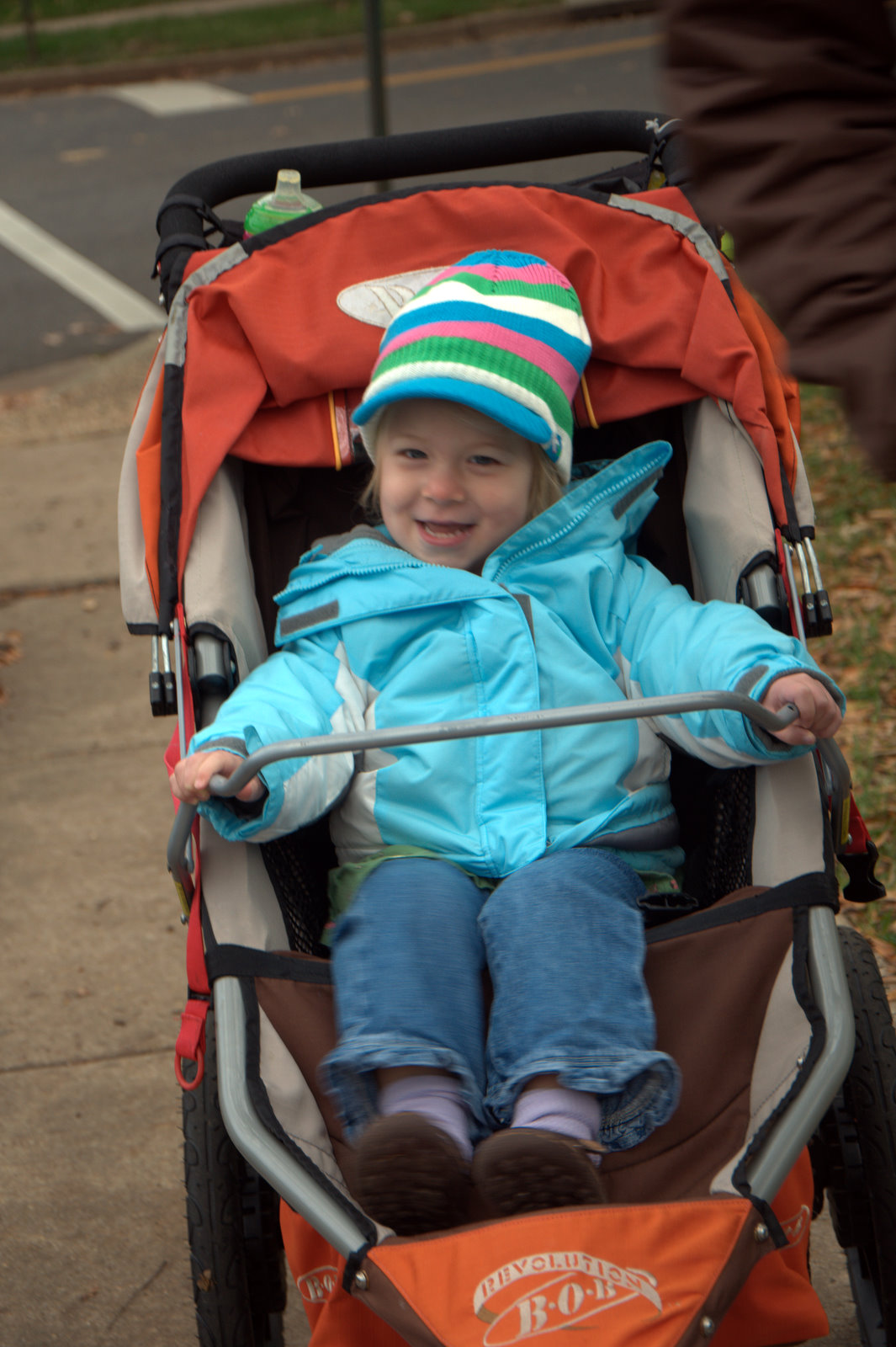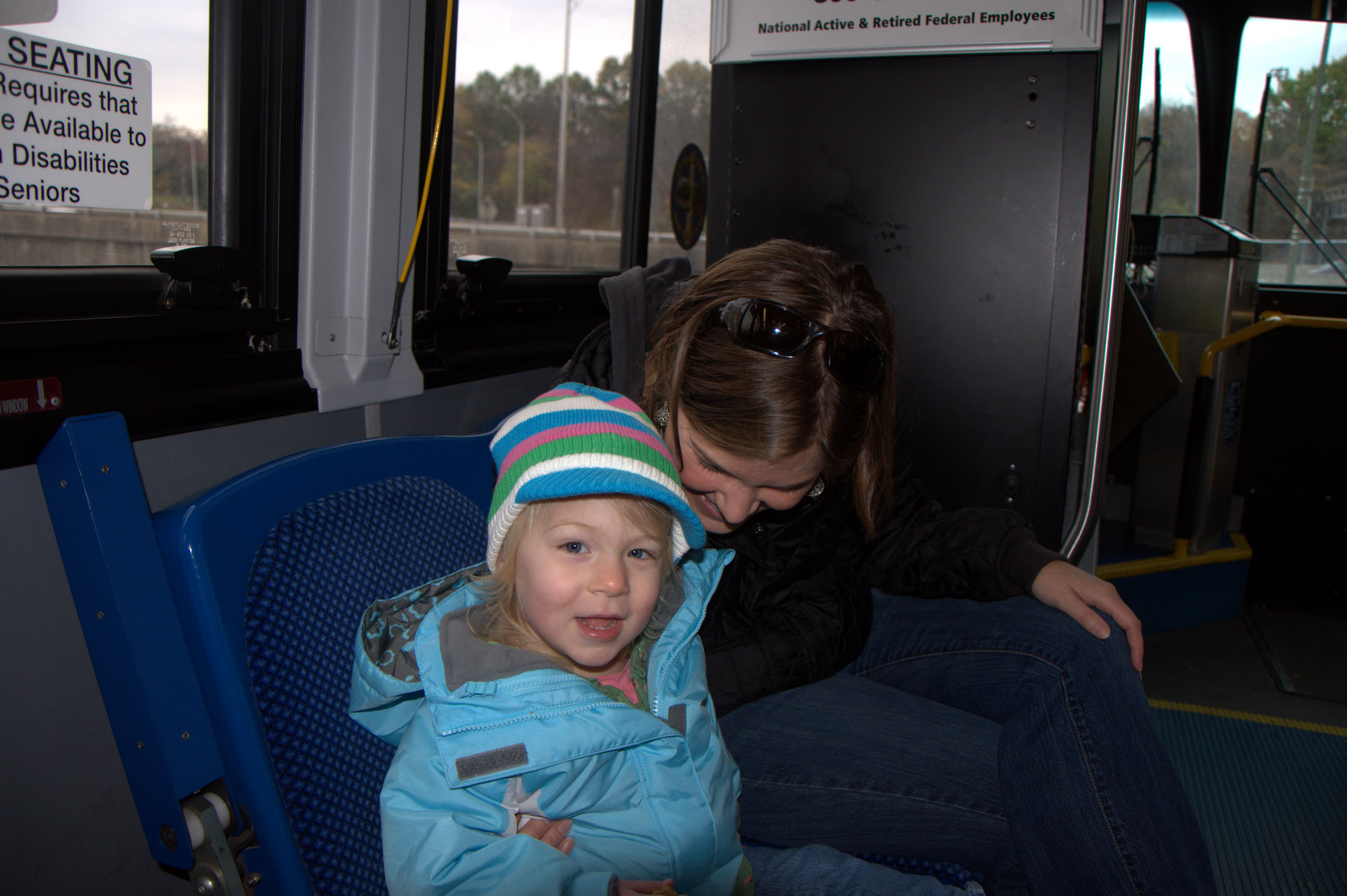 We’ve started a tradition of doing the Homeless Walkathon the weekend before Thanksgiving. This year, we decided to take the bus and metro into the city…and Laina had such a fun time checking out the public transportation scene. I think she preferred the bus since it was a bit more scenic, but she managed to make some friends on the metro since we were on it for for a longer period of time. She was making some of the passengers laugh when she asked me, “Where did Sam go??” When I explained to the people that she was talking about her Daddy, they definitely got a kick out of it.