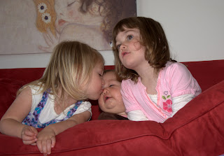 We always have fun with Spring, McKenzie and Addison. Laina and McKenzie played hide and seek, had a tea party, sang and danced together, and were just plain silly together. They also got to snuggle on the couch for a bit to watch Dora. Spring and I had a great time watching the girls really interact this time and have their own little conversations. Addison was a trooper and just seemed to be entertained by the “big girls”…and by having strawberries and avocados for the first time!