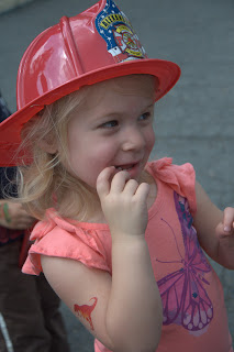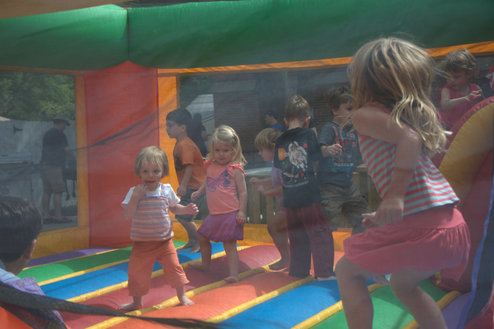 My parents and I have always done something special on Chad’s birthday…whether it has been to go out to dinner or spend time in Old Town, we have tried to be together on that day. This year, we thought it would be fun to go to the carnival at Laina’s soon-to-be preschool. As always, it was wildly entertaining to watch all these little kids at play. Laina had a blast exploring the playground, getting a tatoo with Granddad, jumping in the Moonbounce, “driving” the firetruck, etc. A few times she told us she would like to go to preschool there. Hopefully she isn’t too disappointed that the fire truck and Moonbounce aren’t always at her preschool!