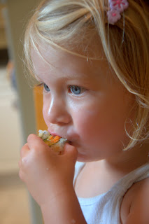 One of the weekend rituals the three of us started when Laina was a baby was to walk down to Shirlington so Laina could take in all of the neighborhood sights, and so that Sam and I could treat ourselves to sushi and smoothies. Now that Laina is old enough and willing to try most things, she is now developing an appreciation for our little ritual. Considering she ate 4 pieces of sushi, we think she likes it!