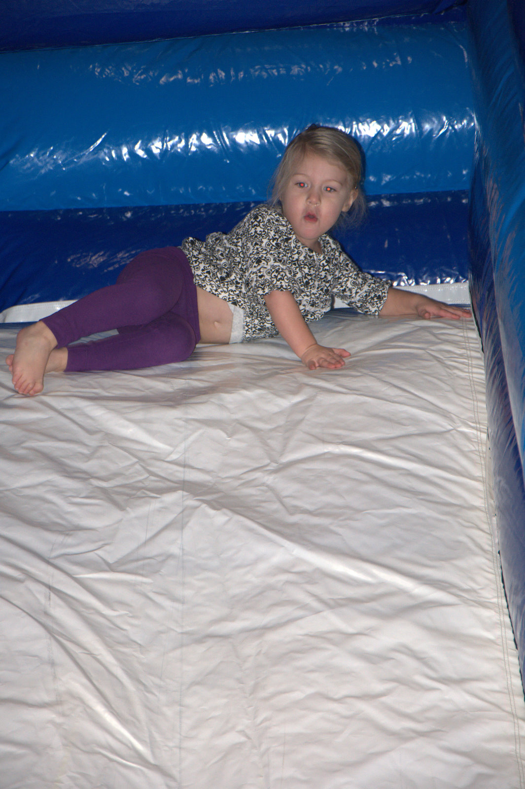 Laina’s friend Audrey turned 3 a few weeks ago, and the party was held at a Bounce House. The kids were in heaven! It was pretty hysterical watching all of them go nuts on the inflatables, and Laina particularly like the big slide. She and her friend Annie spent much of their time there. A few pics: