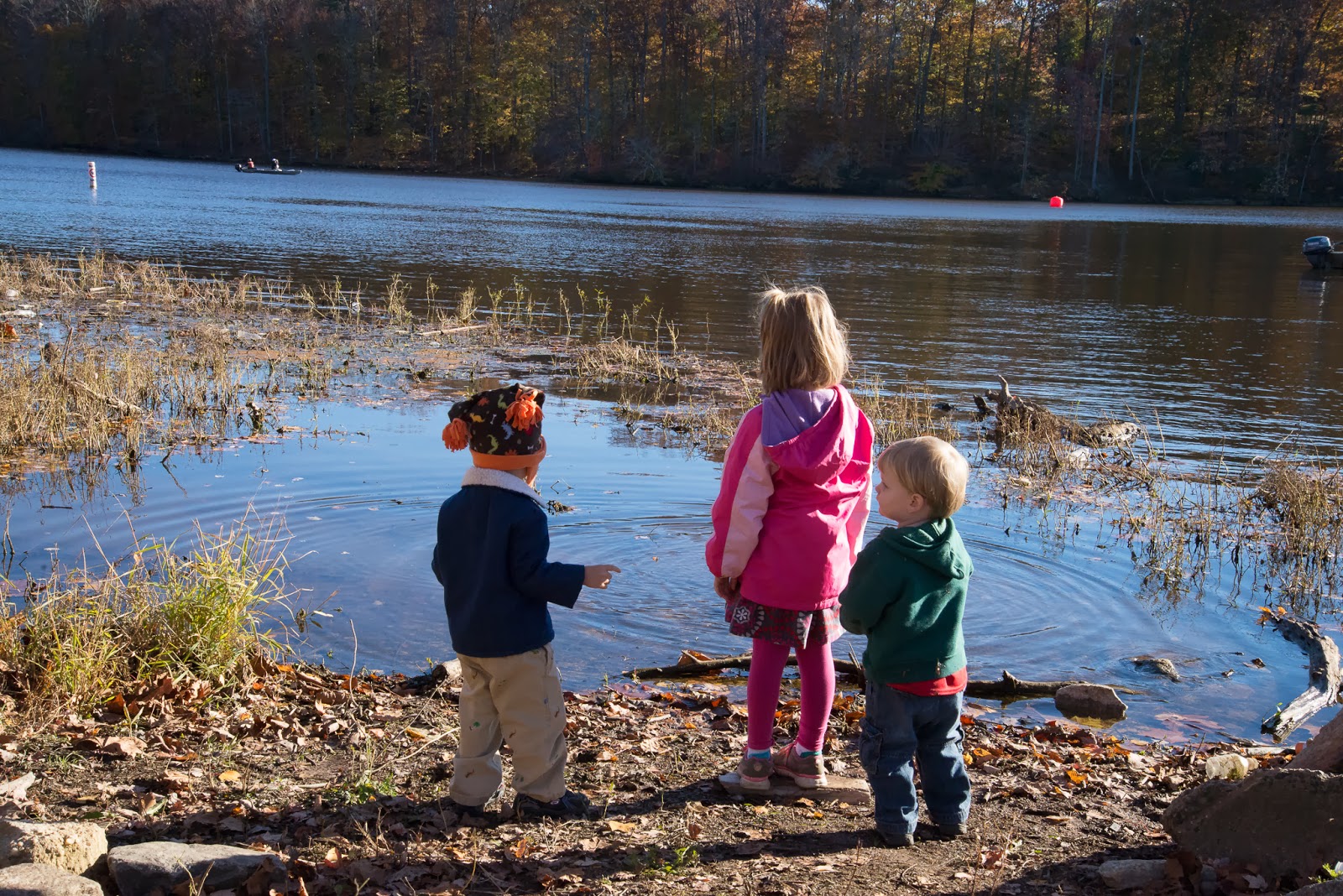 I had to do a post about Sam’s first race! The kids were really excited to go watch their Daddy kick some a**! They were troopers because it was pretty chilly, and it was a super long walk from the car to viewing area. Once we arrived though, they had fun skipping rocks in the water and making friends with a little boy.