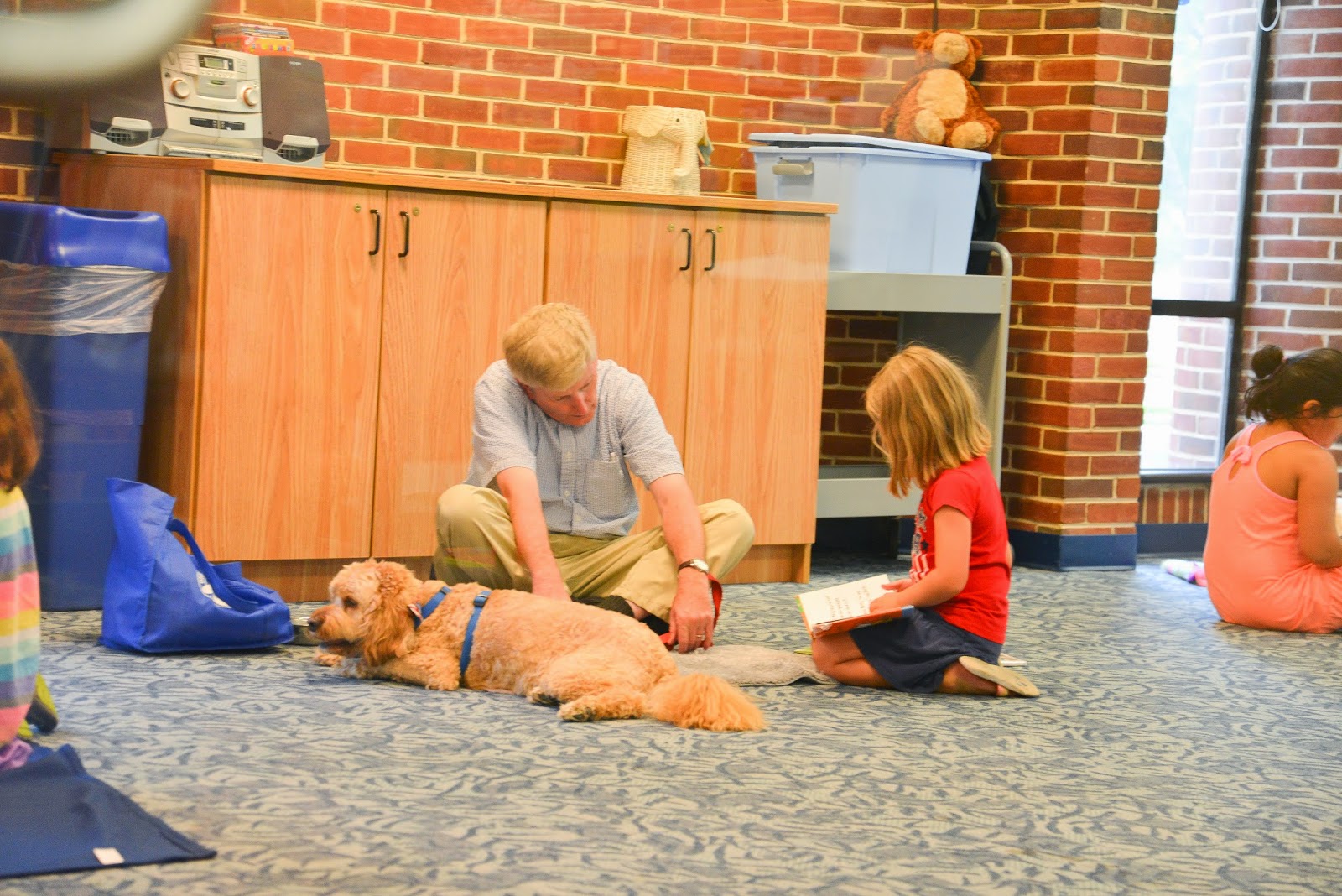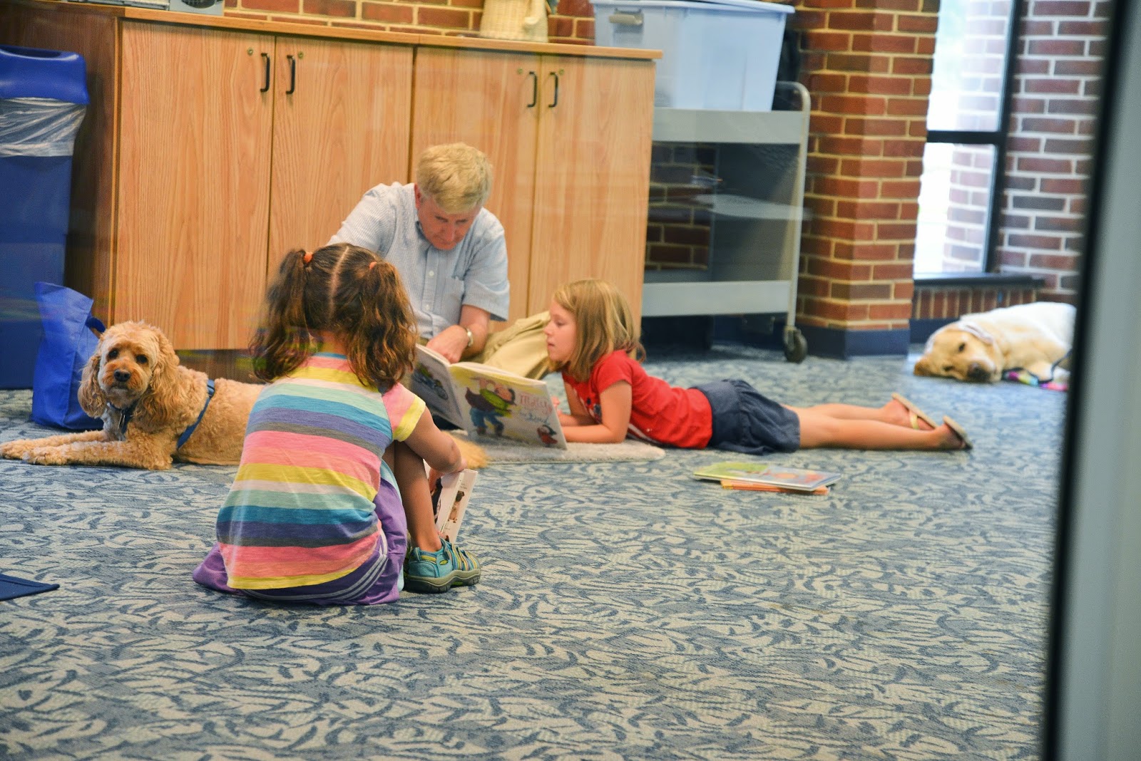 Paws to Read by Casey|Published July 12, 2014 Laina reading to “Wonka” at the local library’s Paws to Read program. It’s every two weeks–she loves it! Since we don’t have a dog, this will have to do for now :).