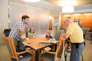 We were away for Charlie’s birthday, so that gave us a good reason to head on up to his place with some birthday cheer. The kids always love driving through the city, and they had lots of fun awaiting them at Charlie’s place. They loved checking out the tank and the airplane on the grounds, and then we got a tour. He was really excited to show us around the new section, and I can’t say that I blame him. It is beautiful! We even got to see where he makes all of his art. It’s clear that it’s a passion of his–his self portrait is hanging beautifully in one of the hallways. After exploring, we sat down in one of the dining areas and had some cupcakes. It’s been really special to see the bond grow stronger between Charlie and the kids.