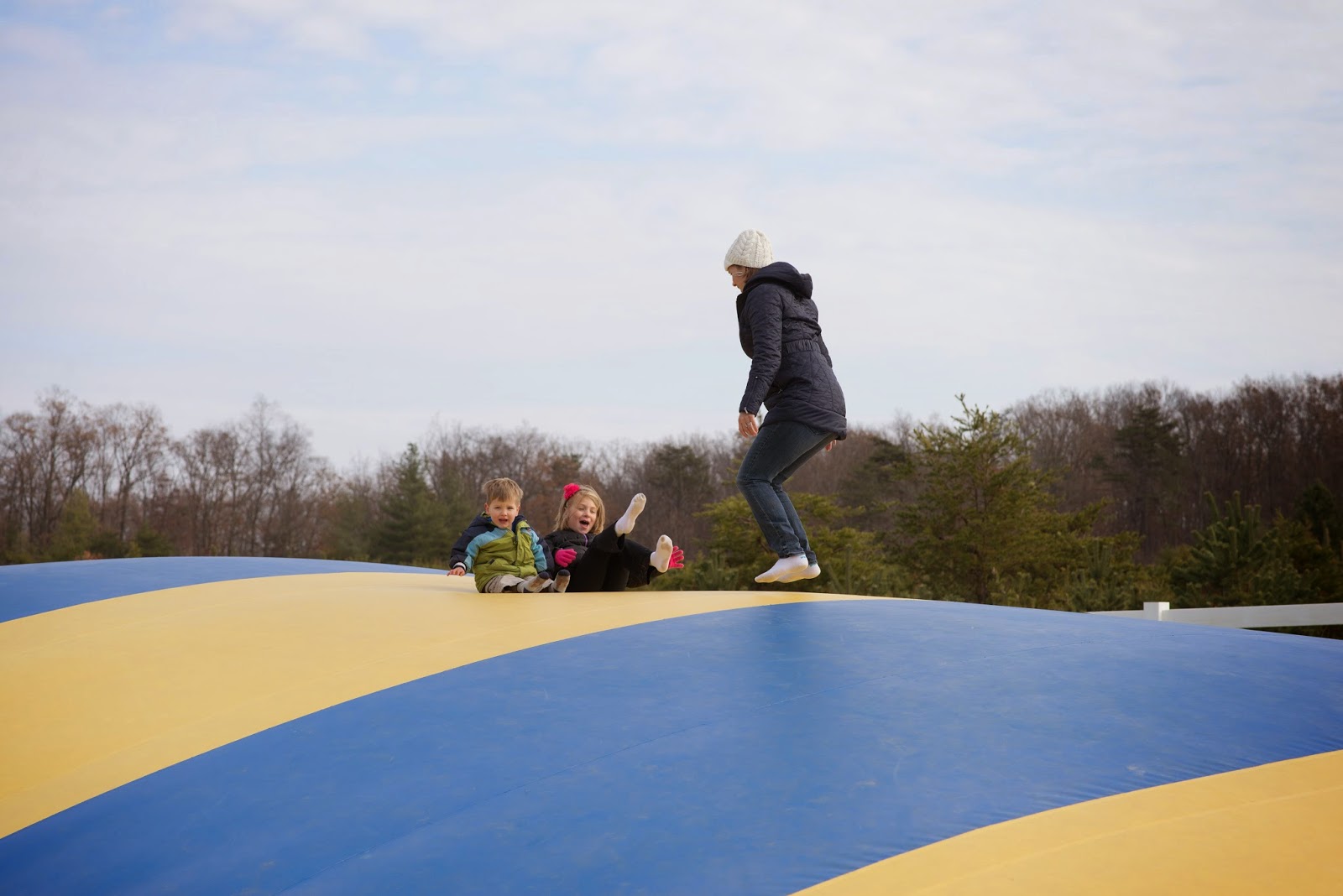 We took our annual trip to pick out and chop down our Christmas tree–it truly is one of my favorite days of the year. I love watching the kids have such a great time–between the open air moonbounce, the slides, the apple cider, the fire pits, the walking bridge, etc etc…all of it brings them such joy! Unfortunately this year Elijah wasn’t feeling so hot…but he hung in there and let his brother and sister have fun for him. This year, I loved watching Laina and Austin go down the slides together. Austin didn’t want Sam or I—he wanted his big sister! And she just ate it up :). They also stuck together on the moonbounce while I tried to bounce them all around. Sam and Elijah got a lot of snuggle time during the trip since E didn’t really want to do much else. He’ll have to make up for it next year!
