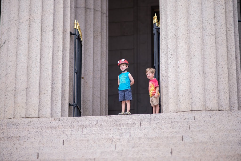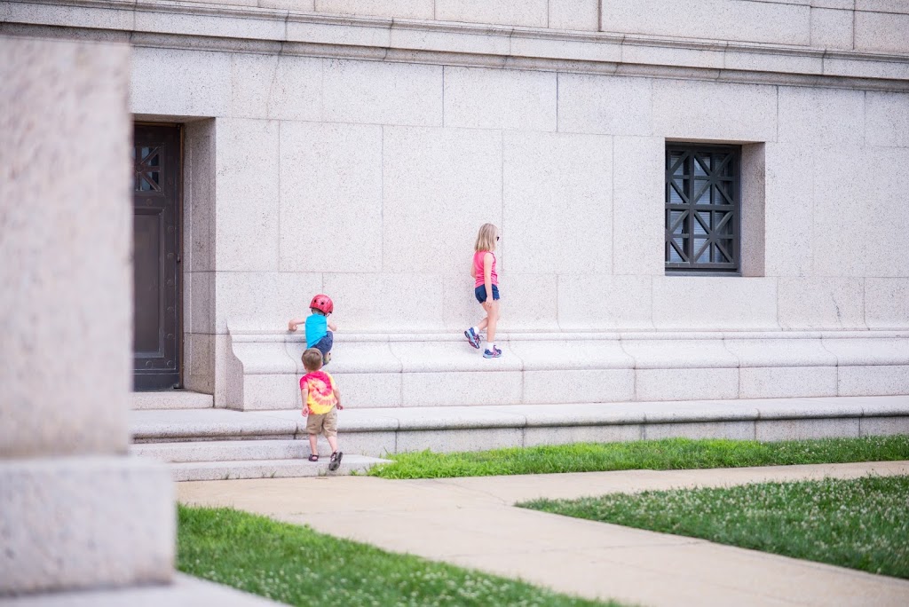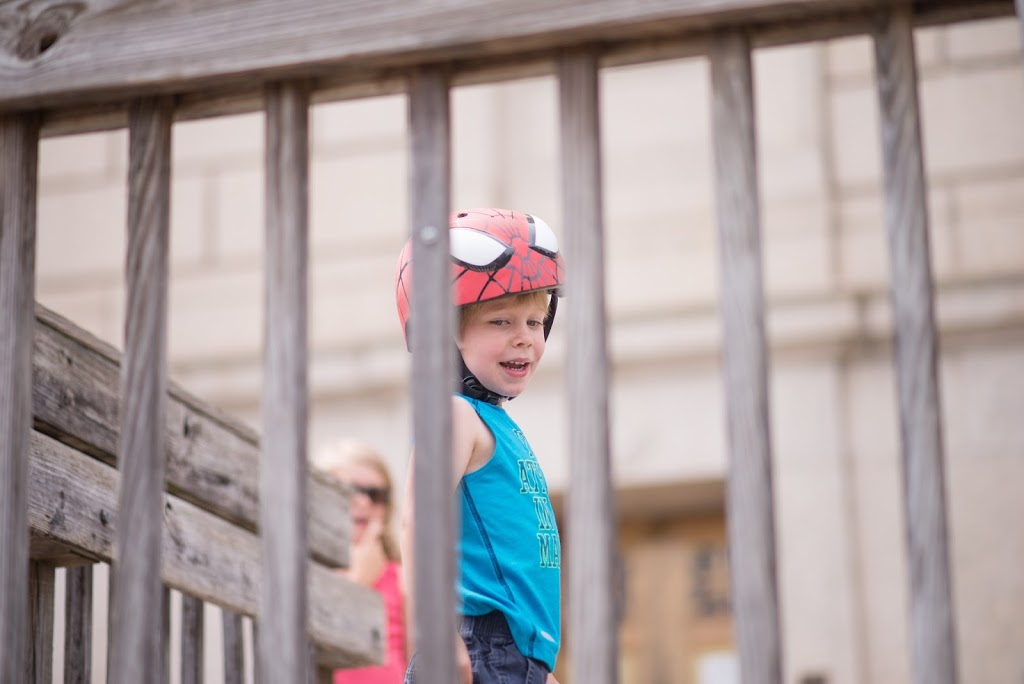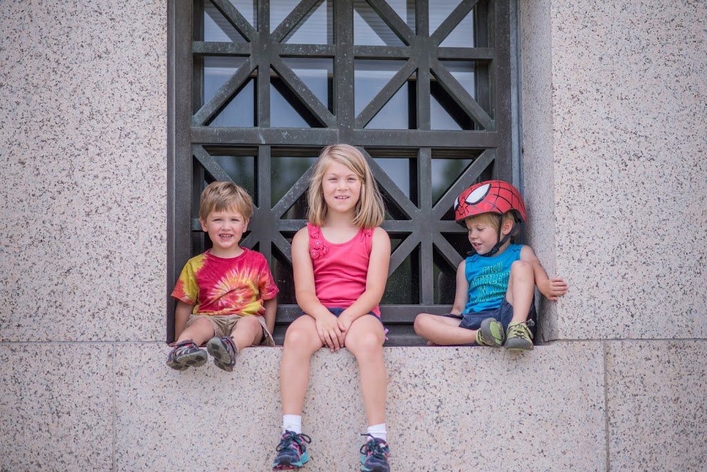 At home, they played restaurant, built puzzles, did “experiments,” fingerpainted, played boat in the bathtub, etc etc. Then we grabbed our bikes and helmets and headed over to the Masonic Temple to ride bikes, play tag on the grounds and in the parking lot. We also had fun checking out the view from the temple (the boys were thrilled that they could watch the trains!) and making up games on all of the stairs and ramps surrounding the temple. Next up with haircuts and lollipops for all 3! Back home for a quick rest and lunch…then chilled out until neighborhood night! Laina had made signs for a lemonade stand earlier, so they got that all set up for the kids to run. They collected lots of money that they plan to donate to charity. A fun summer day!!